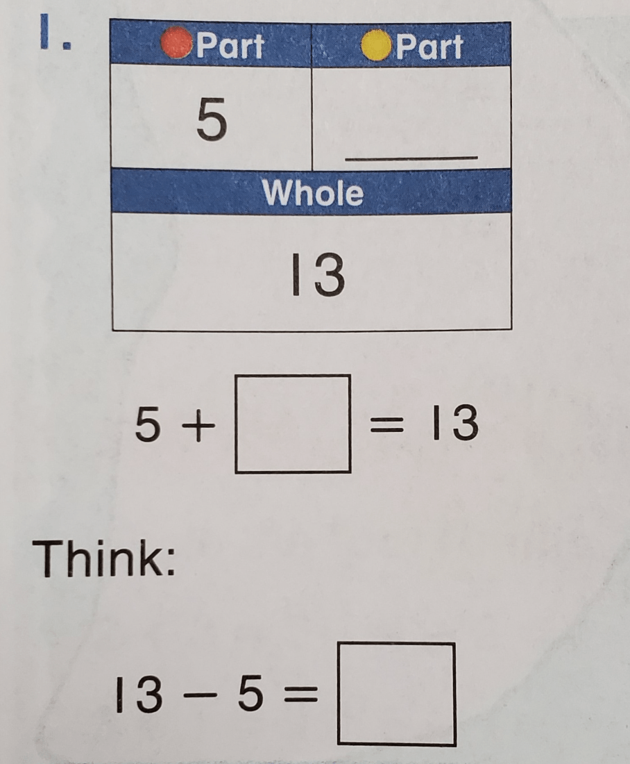 You subtract the sum by the known addend. For example, in the following problem you subtract 7 from 12.