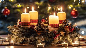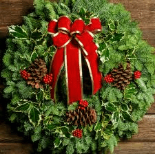 People hang this decoration on their door. Traditionally it's made of pine needles, pinecones, and ribbon.