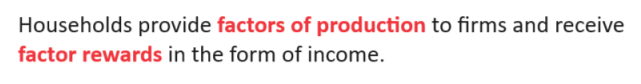 Households provide ______ to firms and receive ________ in the form of income.