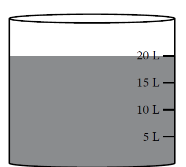 Zara painted some rooms in her house.  The picture shows the amount of paint Zara had when she started painting. When she finished, there were 12 Liters of paint left. How many liters did she use?