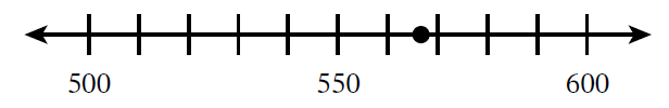 Liz thinks of a number and plots it on the number line. What is Liz's number rounded to the NEAREST TEN?
