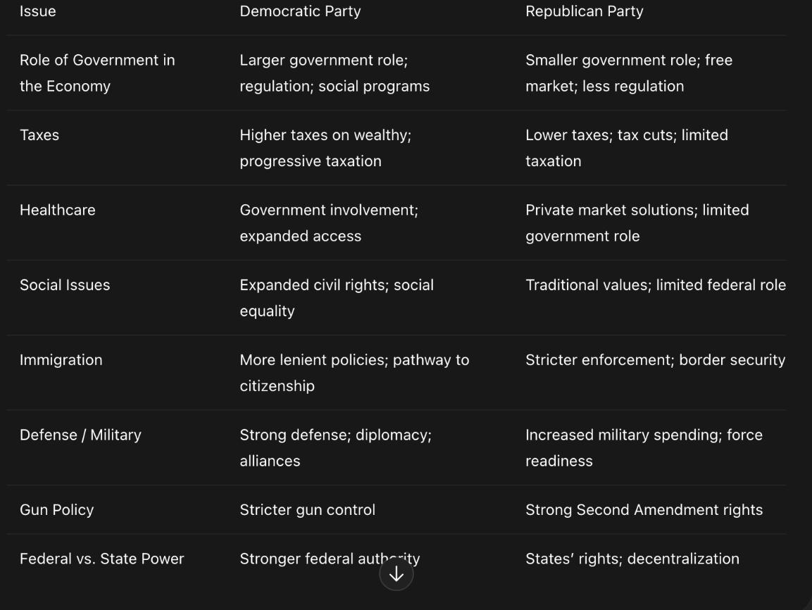 Directions: Complete the chart by filling in the general position of each political party on the issues below. Write on boards D for Democrat on left and R for Republican on right.