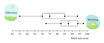 Given the box plot below, James believes that the morning has a larger range than the afternoon but a smaller IQR. Is he correct? EXPLAIN YOUR ANSWER