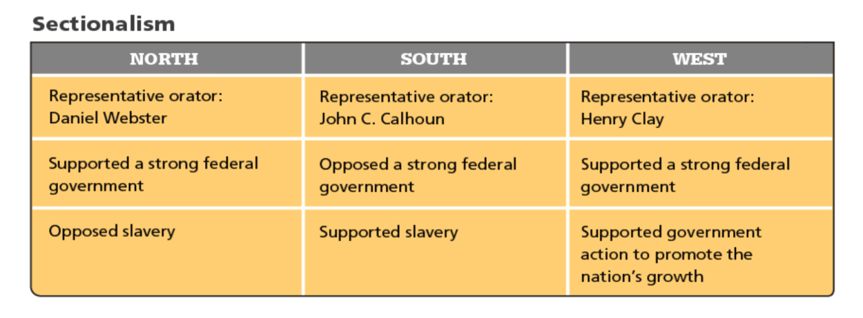 It divided the northern, southern, and western states along regional issues such as slavery, the power of central government, and westward expansion.