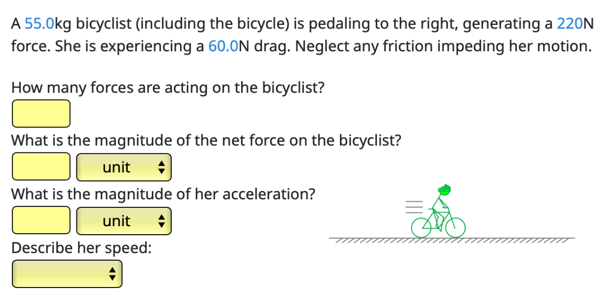 4, 160 N, 2.91 m/s^2, increasing