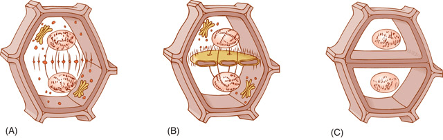 Cell cytoplasm divides and new cell wall forms