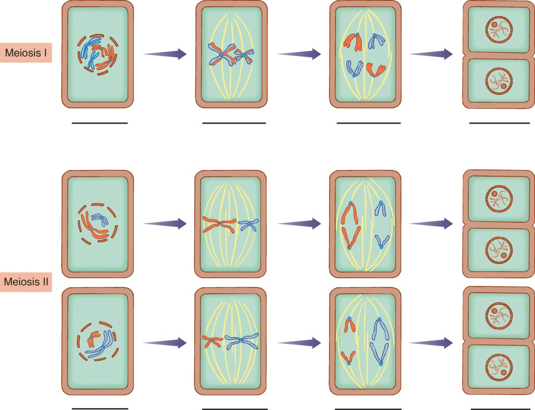 Stage in meiosis where the cells transition from diploid to haploid