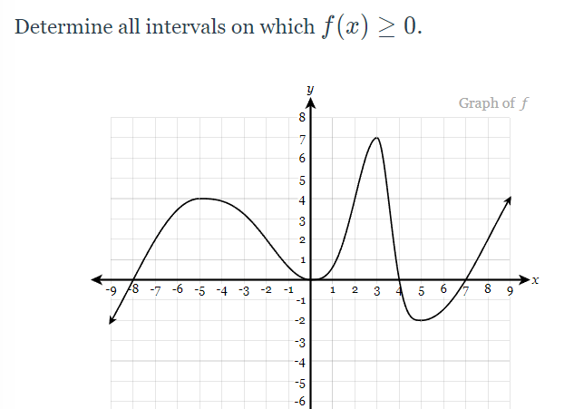 Along which interval(s) is this graph increasing? (Write in terms of input/x-values)