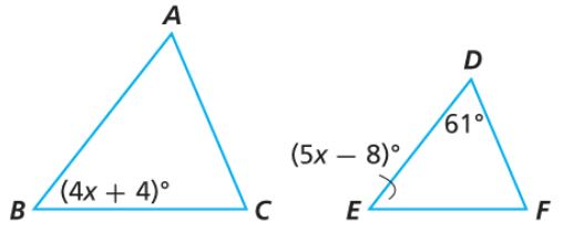 Two triangles are similar if they have two pairs of corresponding angles that are congruent.