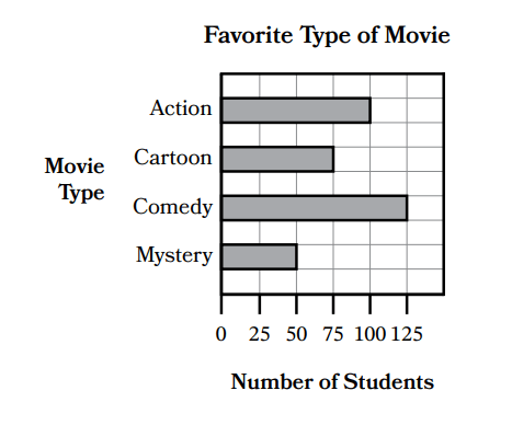 350 students voted for their favorite type of movie. How many more students voted for comedy than for cartoon?