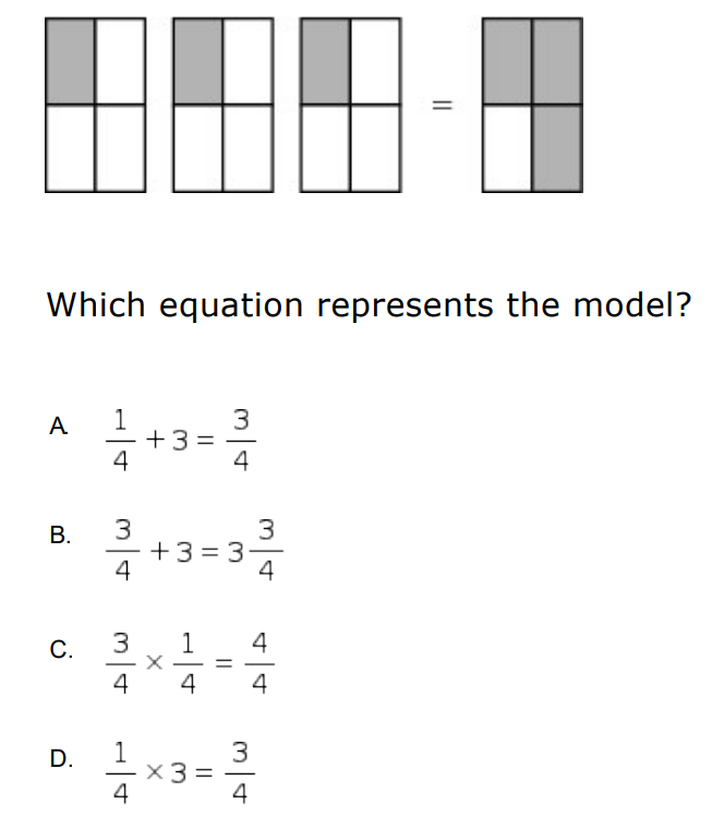 D. 1/4 x 3 = 3/4