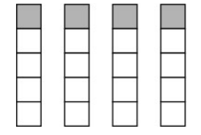 B. 1/4 + 1/4 + 1/4 + 1/4 = 1