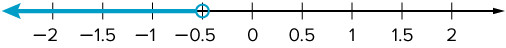What inequality would have the key words smaller than, below, or fewer than and be graphed with an open circle pointing to the left?