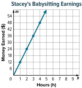 The graph shows the amount of money m, in dollars, Stacey earned for h hours of work. Write an equation that could be used to find the amount of money Stacey earns for any number of hours.