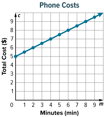 The graph shows the total cost a customer pays c to talk on the phone for m minutes. Write an equation that could be used to find the total cost a customer would pay for talking on the phone for any number of minutes.