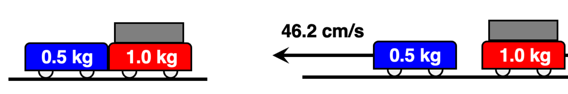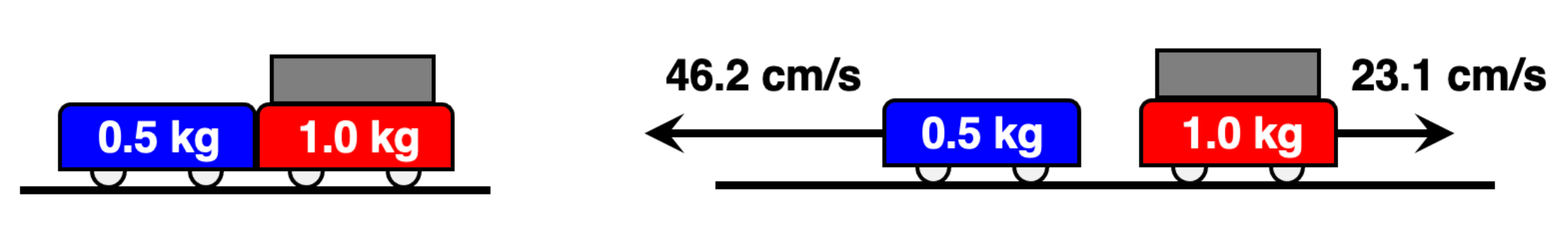 How will the speed of the red cart after the explosion compare with the speed of the blue cart?