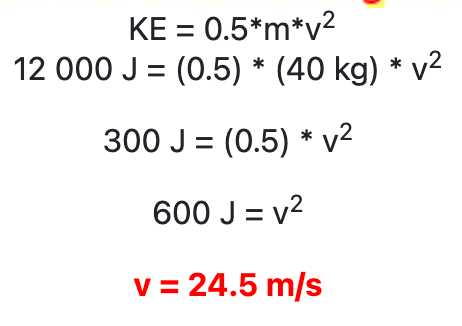 Missy Diwater, the former high-diver for the Ringling Brothers' Circus, had a kinetic energy of 12,000 J just prior to hitting the bucket of water. If Missy's mass is 40 kg, then what is her speed?