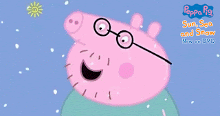 Peppa, George, their friends, and Daddy Pig are making snow castles outside in the winter because it's fun.