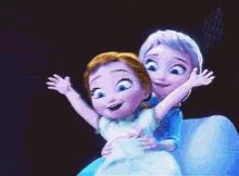 Anna and Elsa are sliding down the snowy slide in the winter because they like it.
