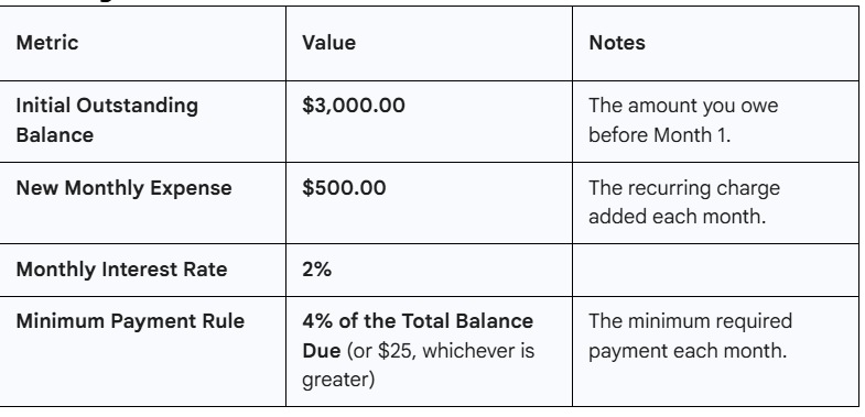 How much would be owed after 3 months of paying off your credit card bill in full?