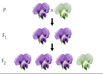 Explain what the highest probable genotype of the P generation purple flower must be according to the image below.