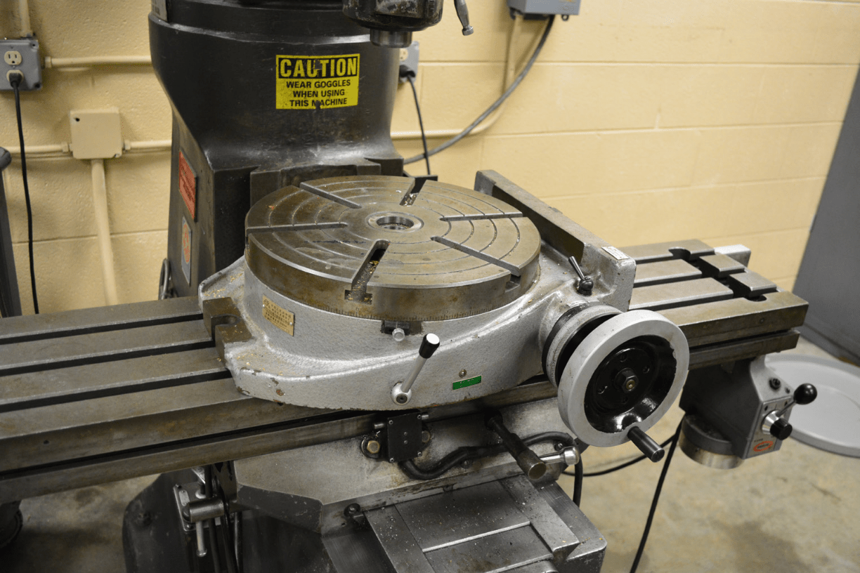 This milling machine attachment can be used to rotate work on a horizontal plane.