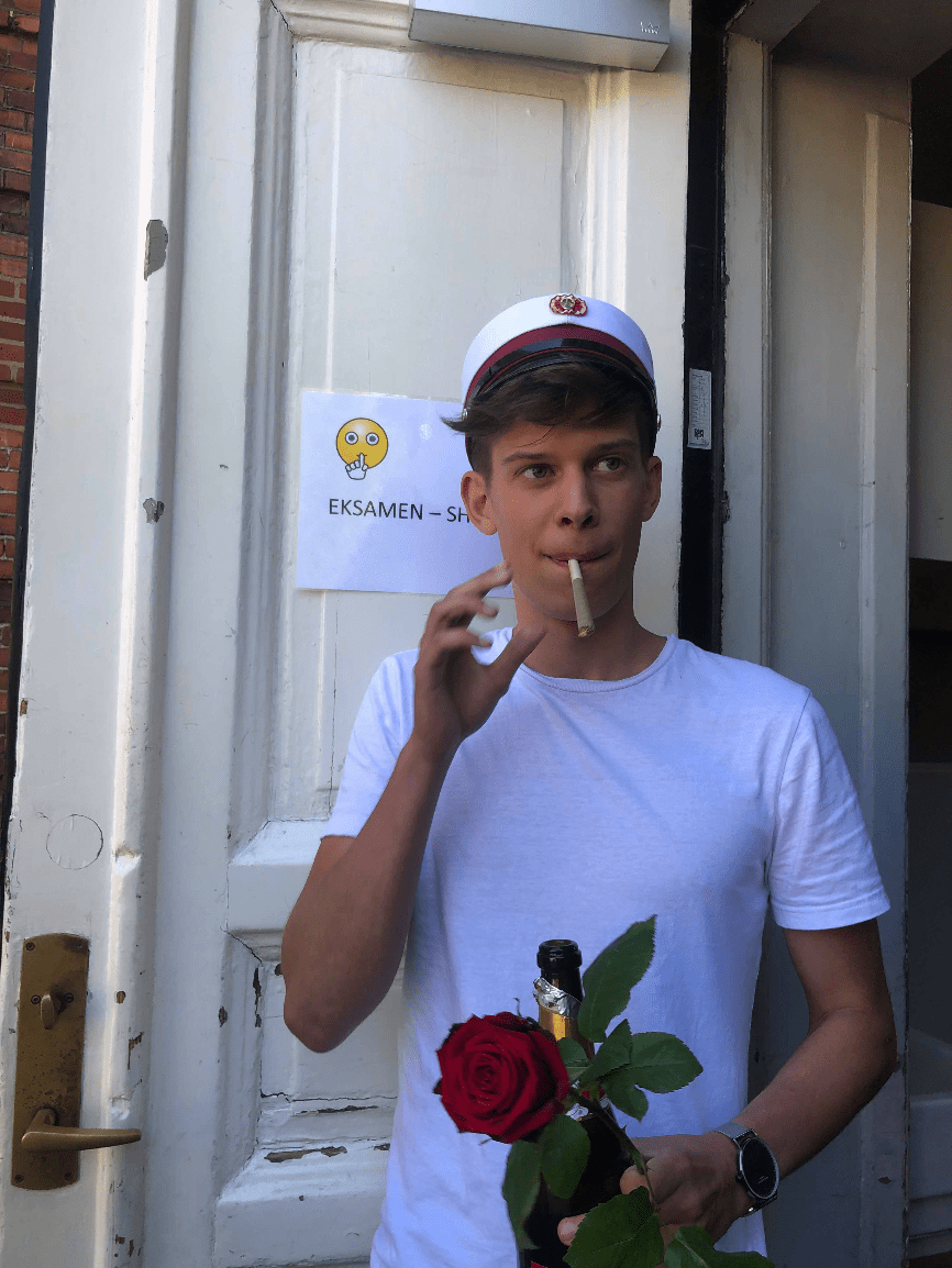 Nikolai vælger at male graffiti med en sprittuds i forhallen på Aksels kollegie. - QR-gate