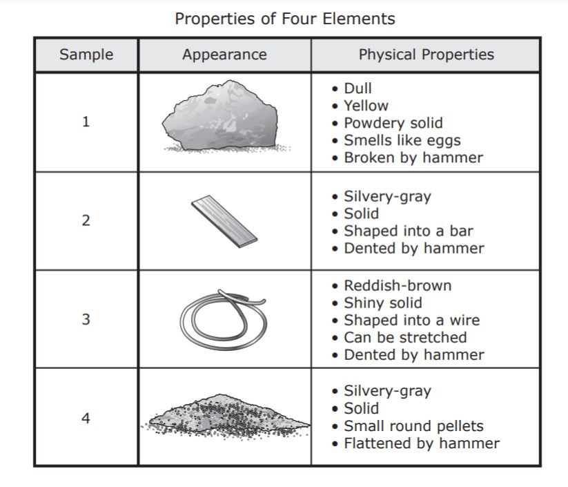 Below is a table of four different samples and their physical properties. Of the four samples, which is the nonmetal?