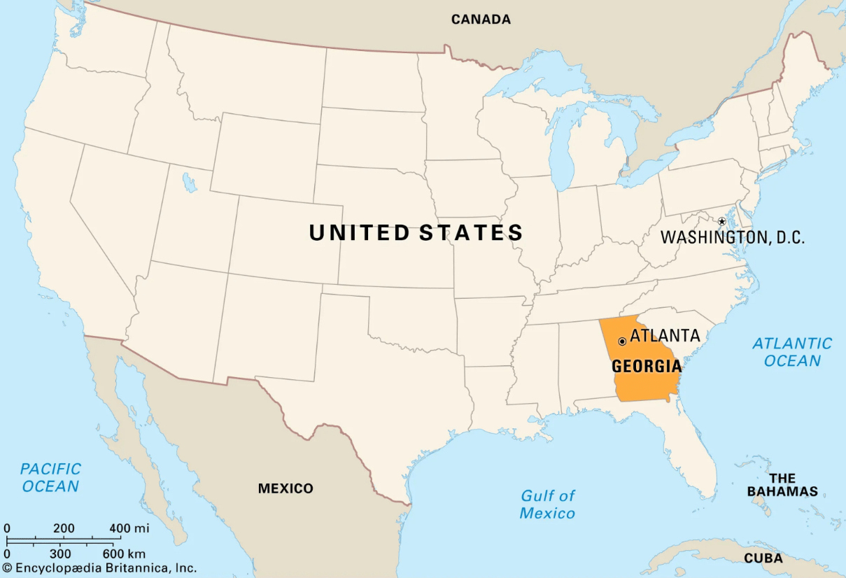 This State is one of the original 13 colonies. It is located touching the Atlantic Ocean. It’s Capital is Atlanta