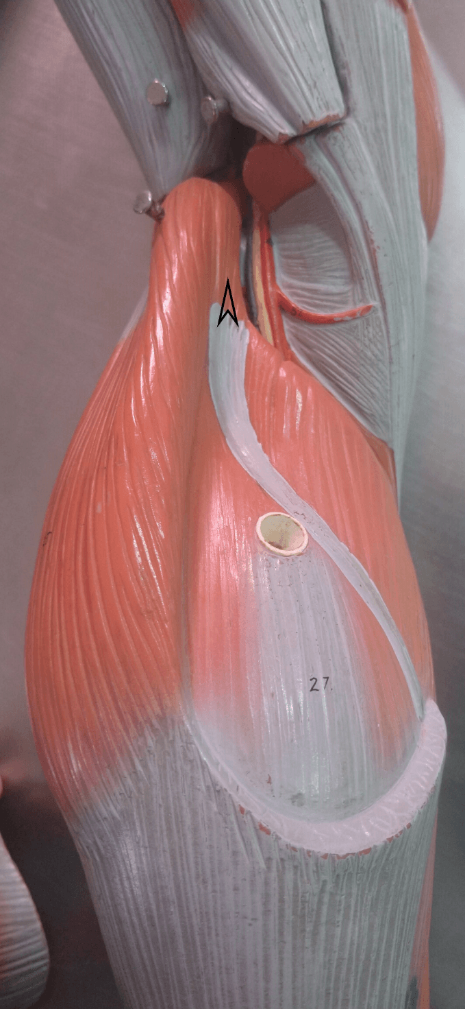 Se insere na cabeça da fíbula e realiza rotação lateral do joelho