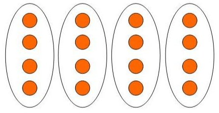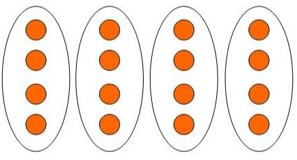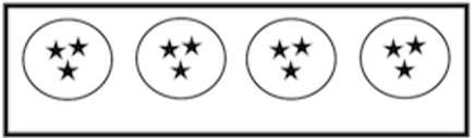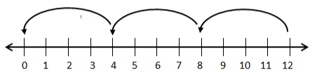 This model shows ? x 4 = 12 OR 12 divided by 4 = ?