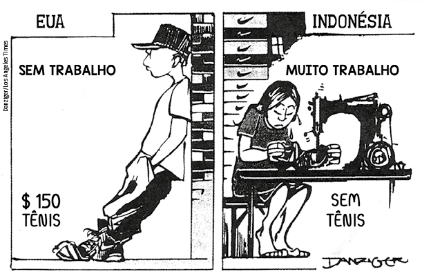 A globalização da economia por meio das multinacionais, que se aproveita da mão de obra barata em países menos desenvolvidos.