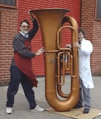 grand piano and giant tuba