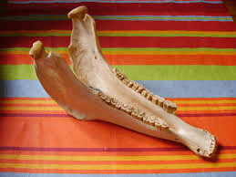 It's the jawbone of a donkey or burro.