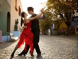 This Argentine dance that uses fast music with a Spanish influence and involves fancy footwork with kicks.