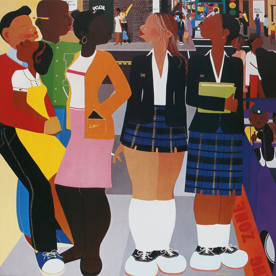 What is a white dress with flesh tone stockings and black closed toe shoes?