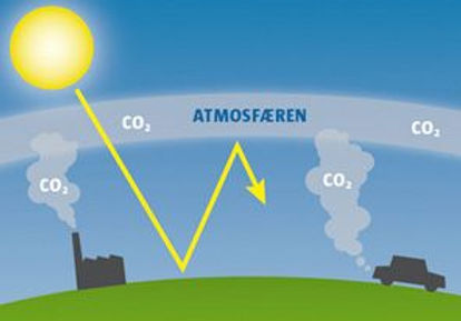 Når der kommer for meget CO2 i atmosfæren (luften rundt om Jorden), bliver atmosfæren "tæt" og så kan varmen fra solen ikke slippe væk fra Jorden - og så bliver vores klima (dvs. vores vejr) varmere, hvilket medfører forskellige problemer.