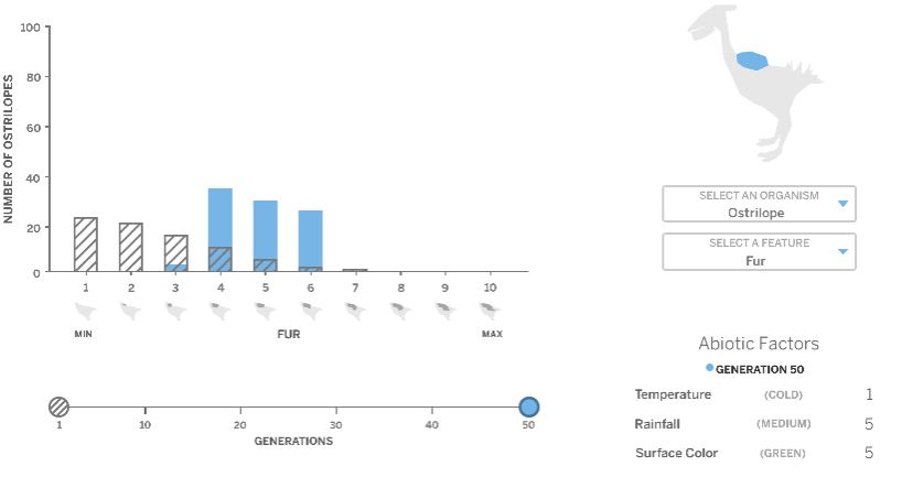 What were the three abiotic (nonliving factors) you can control in the simulation?