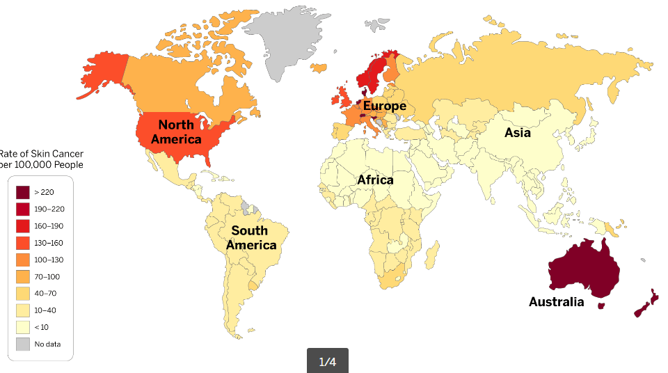 What were the two reasons why people in Australia had a higher rate of skin cancer?