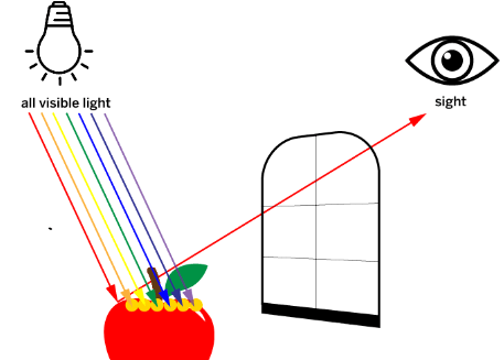Which colors are absorbed and which color is reflected by the apple?