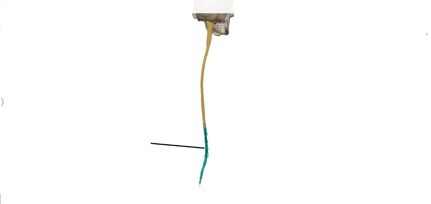 Seen highlighted here, it is the horse tail-like extensions of the spinal cord.