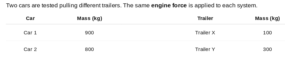 Car 2 + Trailer X (smaller total mass = 900 kg)