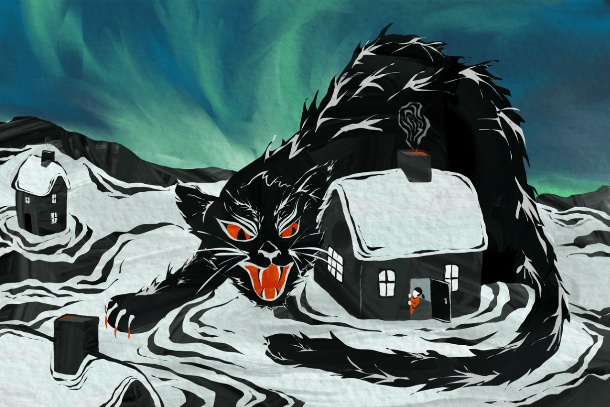 A vicious and huge cat that stalks Iceland that is said to lurk in the snowy countryside during the Christmas season and eat people who do not receive new clothing before Christmas Eve.