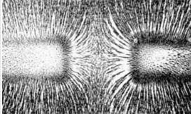 The two magnets below the paper filled with iron filings have these two poles facing one another.