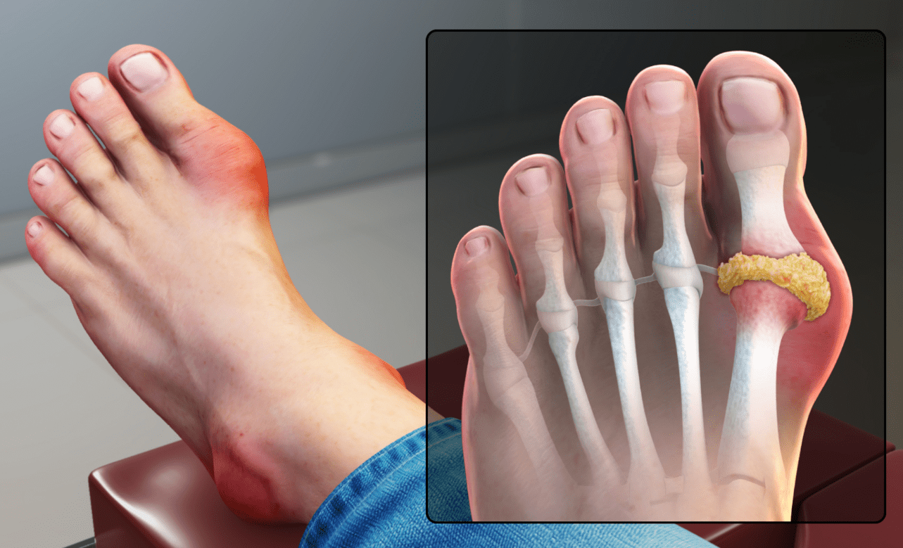 A 45-year-old man complains of sudden pain, redness, and swelling in his big toe.