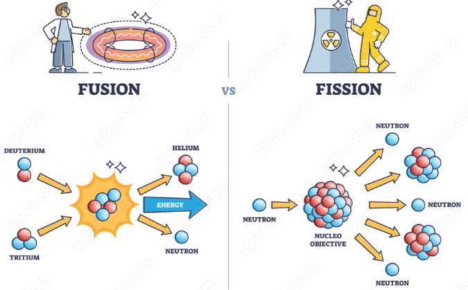 Fission "like division" is the process in which one atom splits into 2 or more new atoms as products.