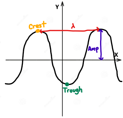 Amplitude is the height of the wave from its mid-point to its crest or trough