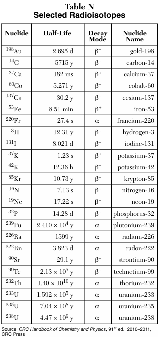 Identify two beta emitters from Table N and describe what changes during beta decay.