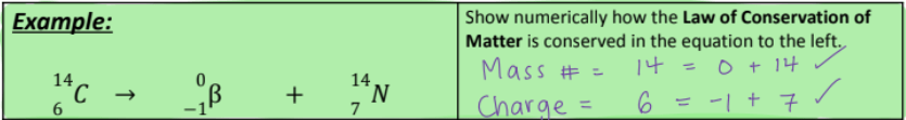 Explain how nuclear reactions obey the law of conservation of mass and charge.