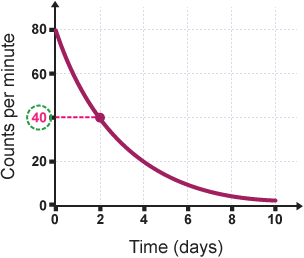You start with 100 g of an isotope. This isotope has a half life of 36 hours. When you only have 5 g left, this much time has passed.